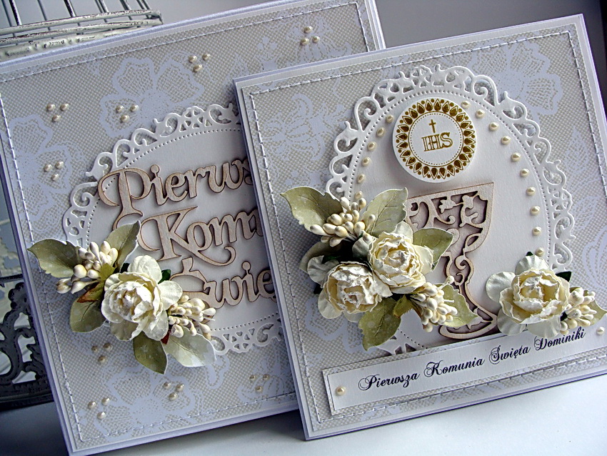 Pozostaje mi się powtarzać, ponieważ znowu chcę napisać, że stworzyłaś piękne prace. Ale naprawdę tak właśnie jest. U Ciebie nic się nie zmienia - nadal zachwycasz :) Piękne wykrojniki, pierwszy raz je widzę.